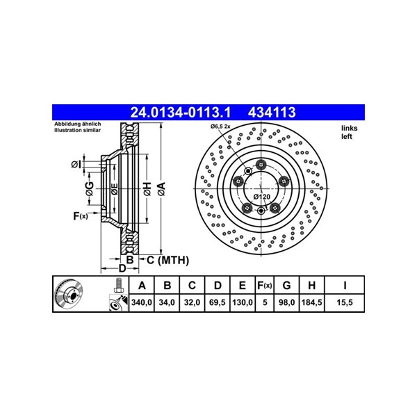 Jarrulevy, Etuakseli, vasen Ate 24.0134-0113.1 - porsche 911, 911 cabriolet, 911 targa, boxster spyder - OE 991 351 403 01