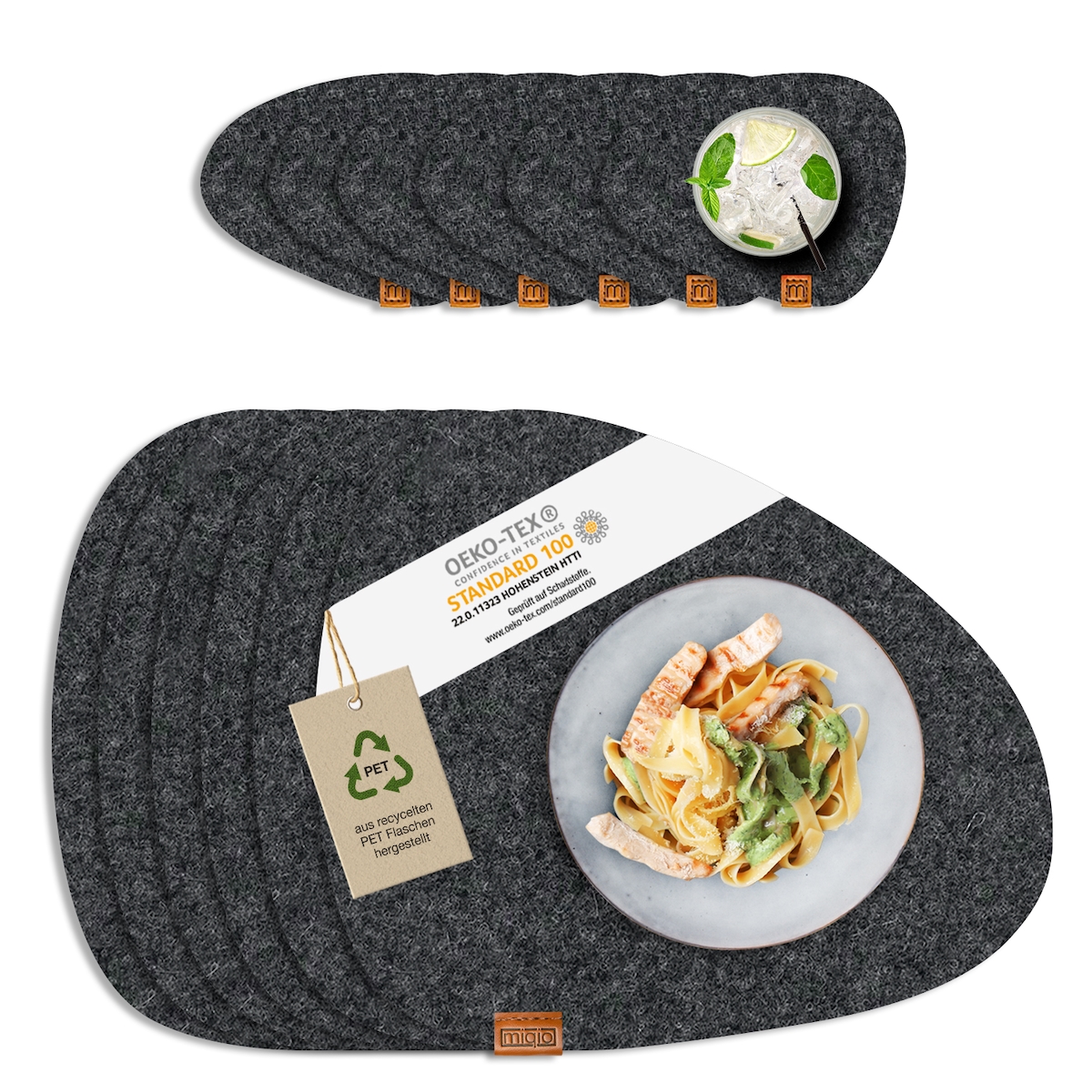 12 er Set Tischsets 6 Platzsets Glasuntersetzer 40 x 32 cm