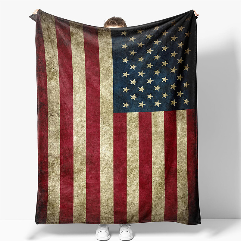 Independence Day Fleece Throw Blanket for Couch Gift US America Flag Vintage Classic 3D Sofa Bed Decorative Warm Blanket Home Decor