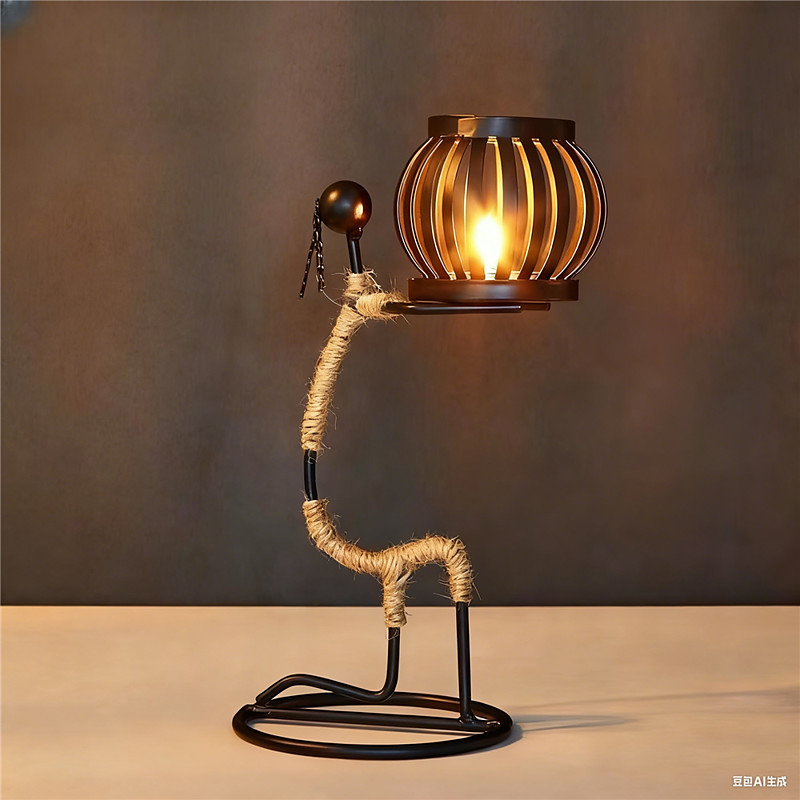 Nordic Metal Candlestick Abstract Character Sculpture Candle Holder Decors Handmade Figurines Home Decoration Art Gifts Button Battery Powered 1PC