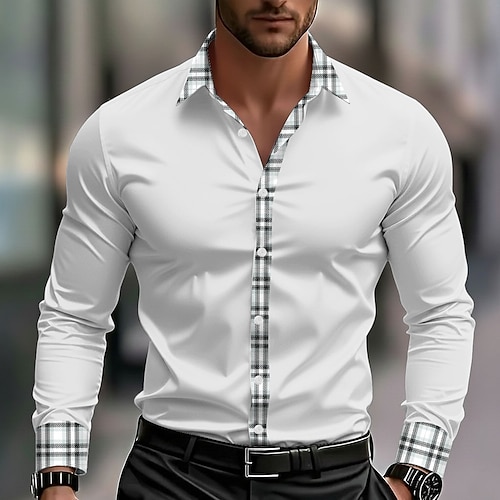 Herren Geometrisch Karo / Karomuster Hemd Knopfhemd Lässiges Hemd Langarm Modisch lässig Outdoor Alltagskleidung Frühling Herbst Umlegekragen 3D-Druck Hemden mit Kragen Schwarz Weiß Wein Dunkelblau