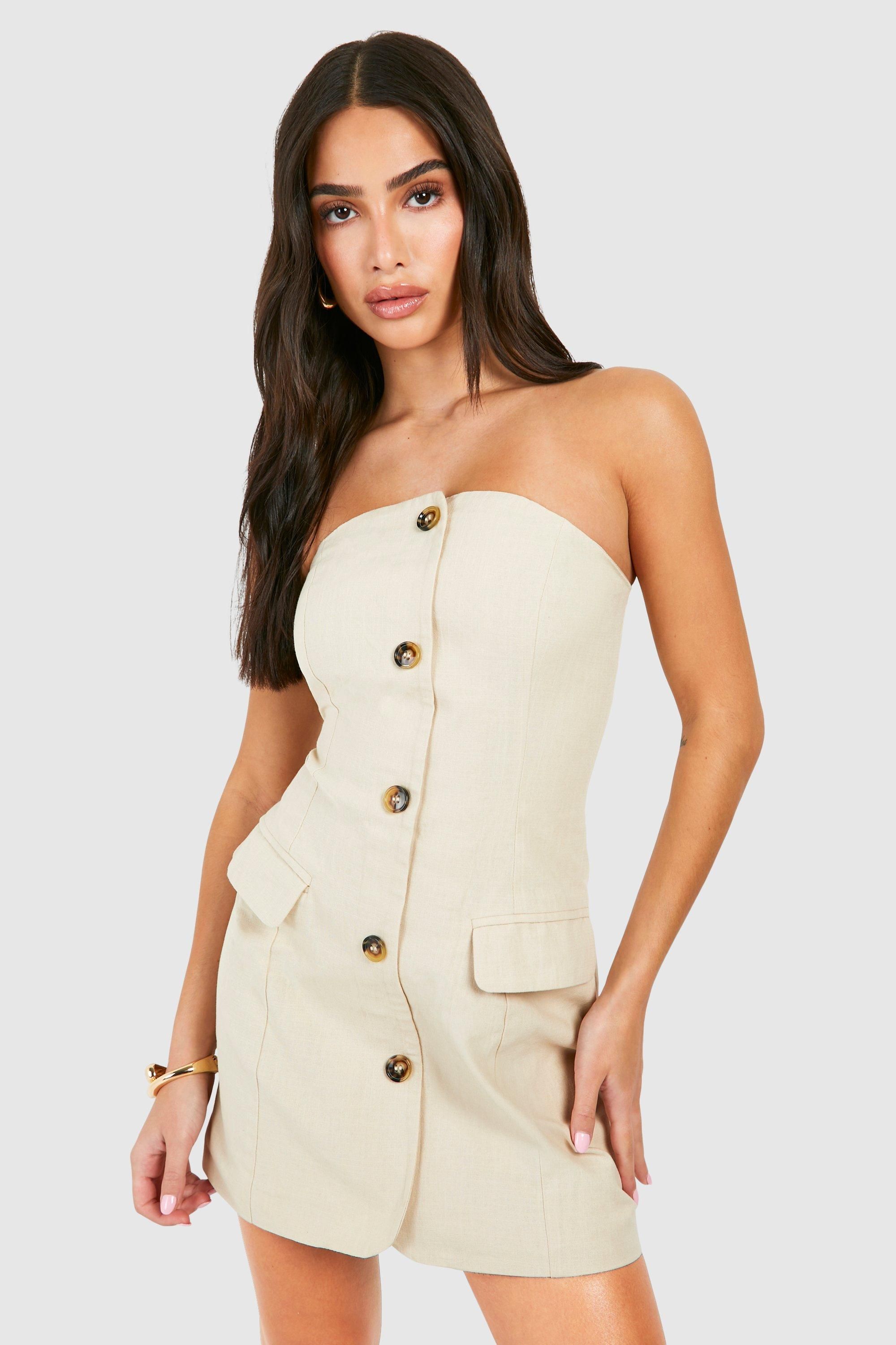 Boohoo Womens Petite Linen Look Bandeau Blazer Dress - Natural - Size 16 UK | Boohoo Sale | Discount Designer Brands