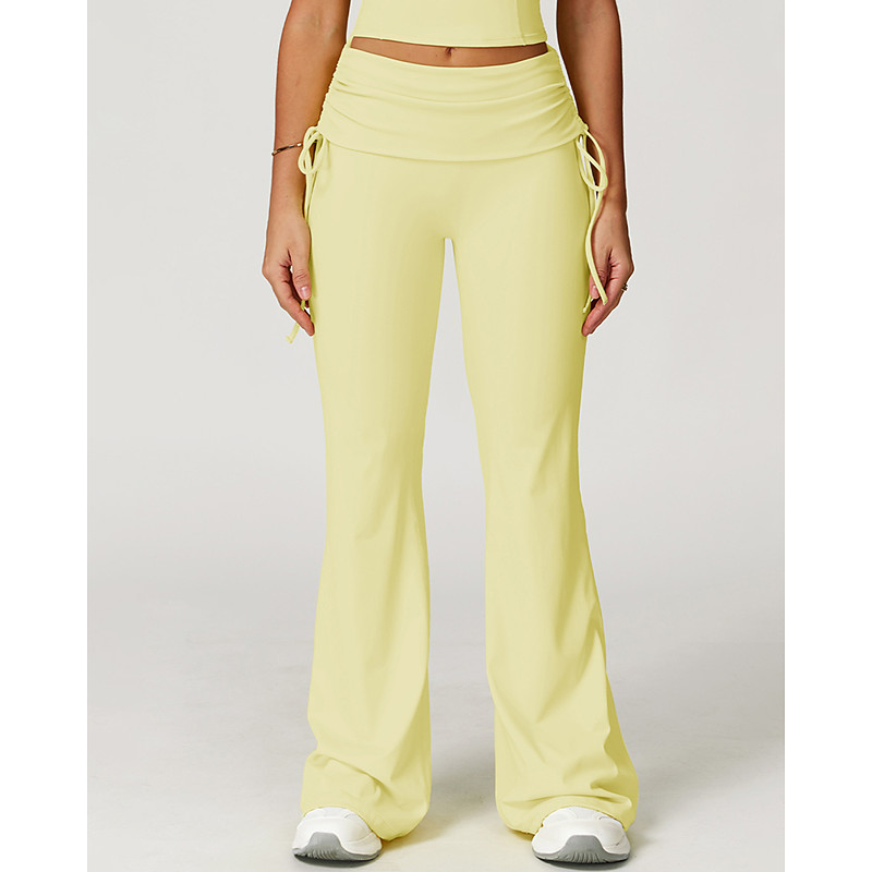 Women's Running Pants Flare Leggings Wide Leg Drawstring High Waist Bottoms Athleisure Gym Workout Tummy Control Workout Athletic Running Regular Fit Sportswear Activewear Solid Colored Black Yellow