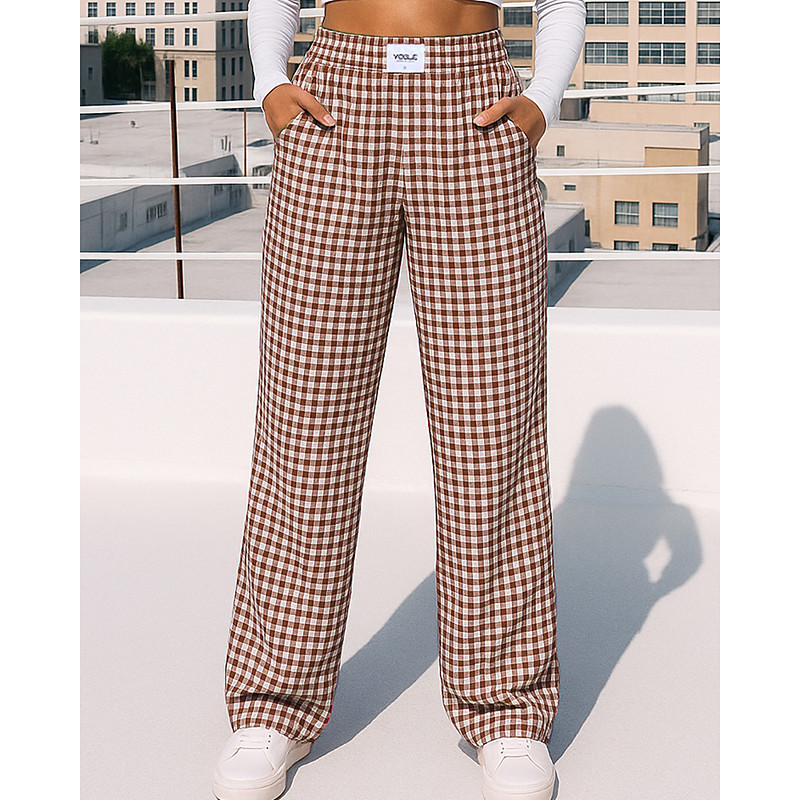 Women's Wide Leg Pants Casual Pants Pocket High Waist Bottoms Athleisure Gym Workout Fall Cotton Fashion Outdoor Travel Loose Fit Sportswear Activewear Plaid Black Pink Blue