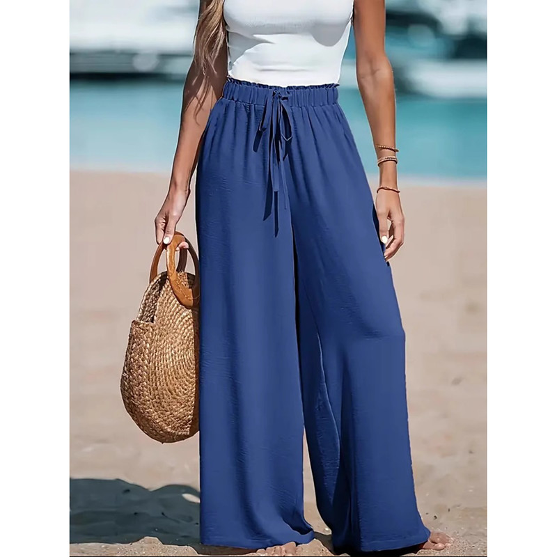 Women's Normal Wide Leg Cotton Linen Pants Slacks Yoga Chino Full Length High Waist Plain Baggy Lightweight Soft Black Dark Blue Beige Coffee Loose Fit