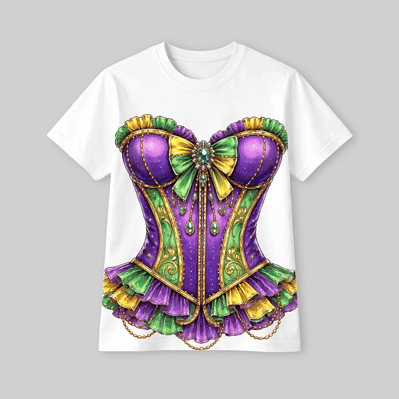 Mardi Gras 2026 T-shirt Sleeve T-shirt for Women's Adults' Hot Stamping for Carnival Mardi Gras Club Festival