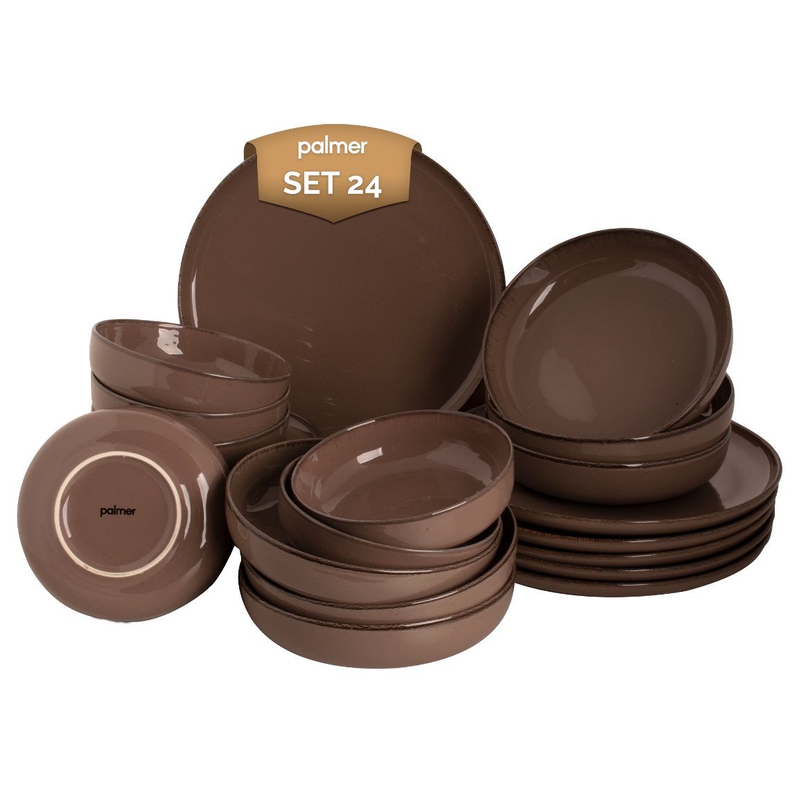Palmer ANTIGO Geschirrset 6 Personen, modernes Tafelservice 24-teilig, Kombiservice Steingut, Geschirr Braun, Spülmaschinen -& Mikrowellenfest