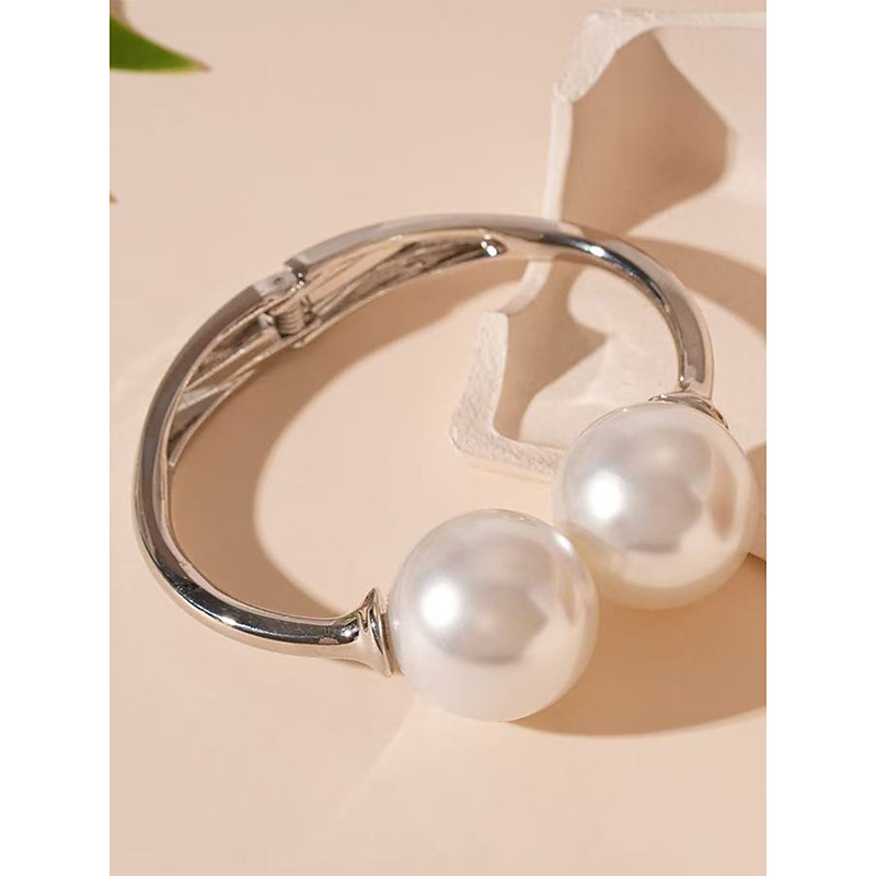 Women's Pearl Cuff Bracelet - Minimalist Open Bangle with Large Faux Pearls for Elegant Party, Cocktail Evening Accessories