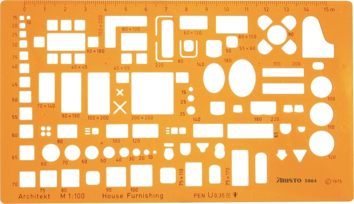 Aristo Möblierungsschablone 1:100 gelb Packung mit 10 Stück