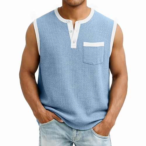 Herren Waffel-Tanktop Tank Top Weste Unterhemd Ärmellos Henley Sommer Einfach Mode Klassisch Lässig Lässig Täglich Heim Hellgrün Rote Dunkelblau Top T-Shirt für Herren