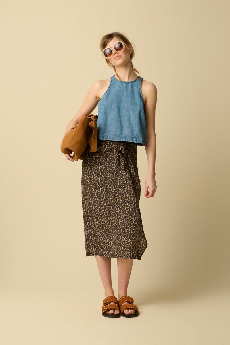 Bruine Maxi Wrap Rok Met Leopard Print