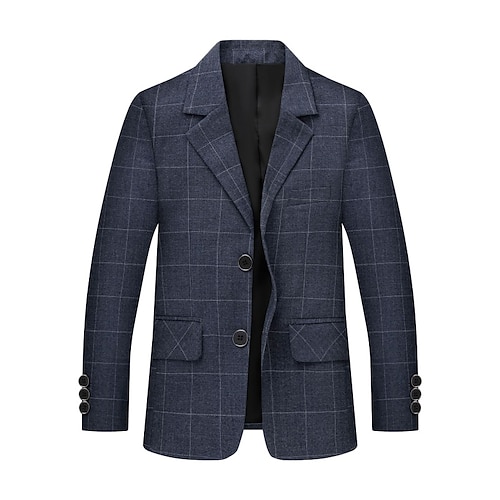 Bambini Ragazzi Blazer Capispalla Plaid Manica Lunga Tasca Bottoni Cappotto Feste Moda Streetwear Cool Blu Nero Grigio Primavera Autunno 4-12 Anni