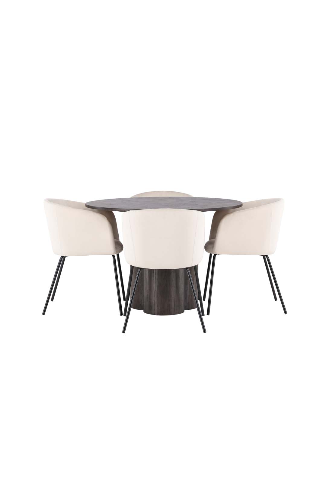 Olivia spisebordssæt bord mocca og 4 berit stole beige