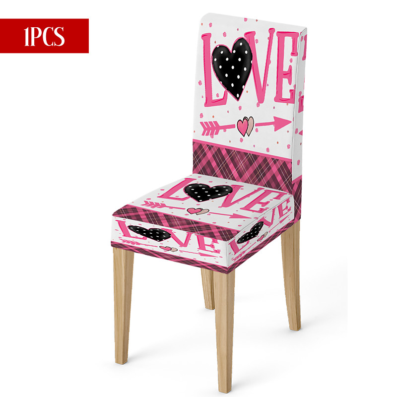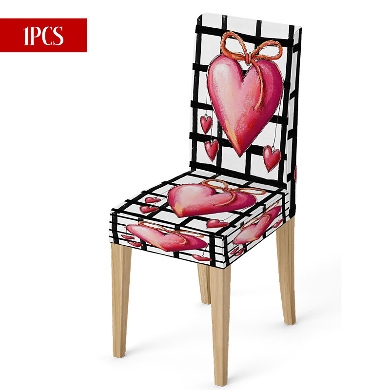 Valentine's Day Stretch Dining Chair Cover Black White Buffalo Check Heart Car Bowknot Chair Back Slipcover Washable Winter Home Restaurant Kitchen Decor 1/4/6 Pcs