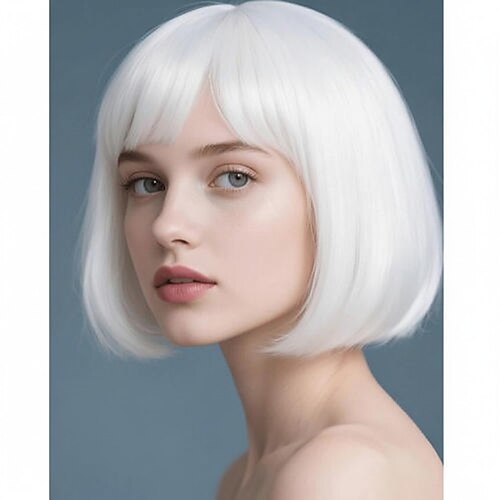 Parrucca di Carnevale Biondo Rosa Rosso Liscio Ciocca Corto Parrucca sintetica da festival Martedì grasso Parata Capelli per costumi da cosplay per Da donna
