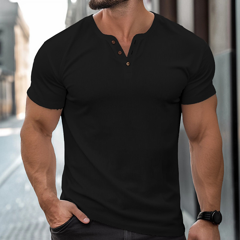 Men's Henley Shirt Muscle Shirt Tee Top Short Sleeves Plain Fashion Designer Basic Plain Henley Vacation Street Casual Summer All Seasons Black White Gray Henley T-Shirt
