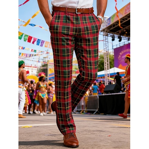 Per uomo Pantaloni Pantaloni Eleganti Chinos Plaid Lunghezza intera Casuale Affari Carnevale Moda Elegante Rosso