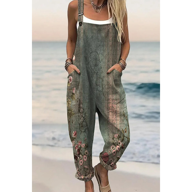 Women's Dungarees Active Floral Sleeveless Sleeveless Harem Square Neck Pocket with Pocket Vacation Daily Loose Fit Army Green Green Beige Summer