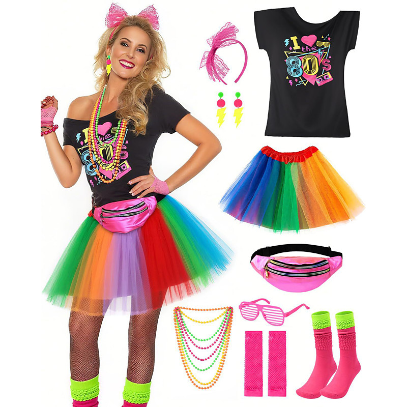 Carnival 2026 Carnival Costume Carnival Skirt Outfits T-shirt Retro Vintage Disco 1980s Adults' Women's Halloween Carnival Party Evening Pride Parade Pride Month Easy Carnival Costume Dress Up