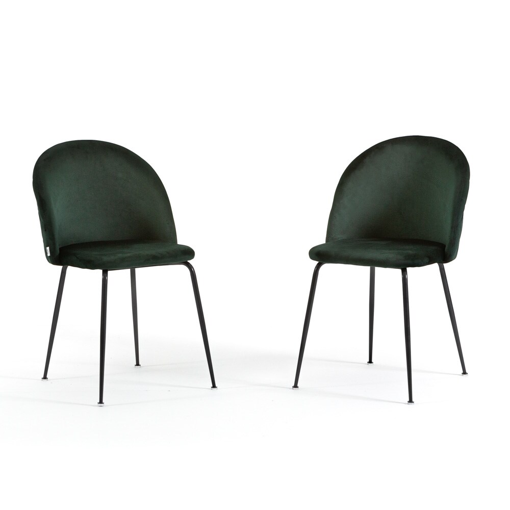 RATTATAN Set aus 2 Innenstühlen aus Samt, gepolstert, mit Metallbeinen, elegantes Design für Esszimmer, Bar und Restaurant – Sara – Dunkelgrün/Dunkelgrau