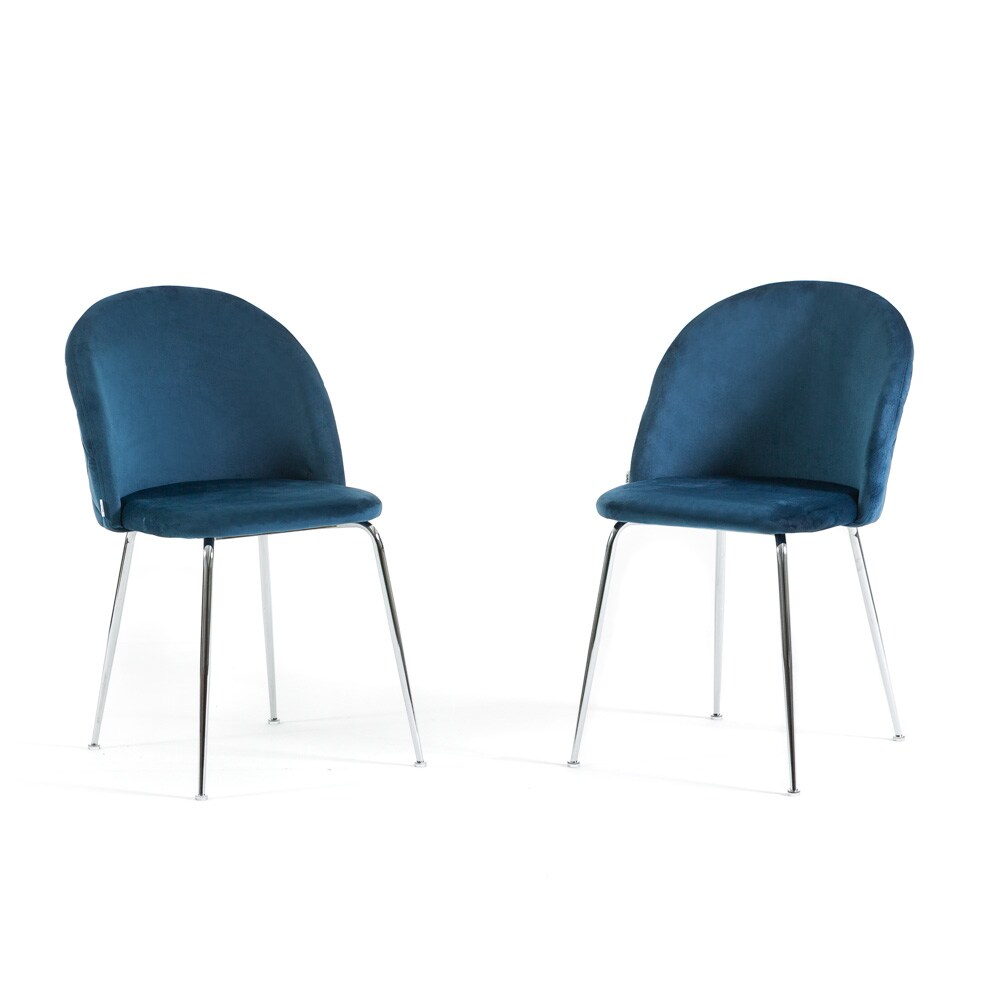 RATTATAN Set aus 2 Innenstühlen aus Samt, gepolstert, mit Metallbeinen, elegantes Design für Küche, Esszimmer, Bar und Restaurant – Sara – Blau/Silber