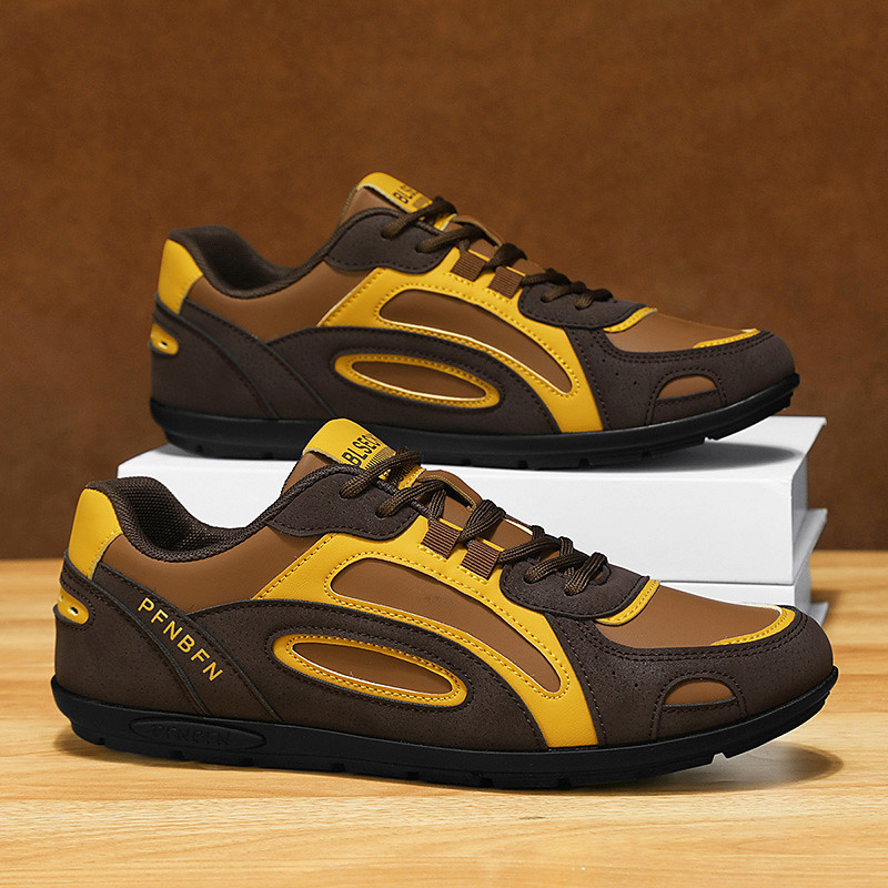 Men's Brown and Yellow Sporty Sneakers – Lightweight Running Shoes with Durable Sole, Ideal for Sports, Gym and Outdoor Activities