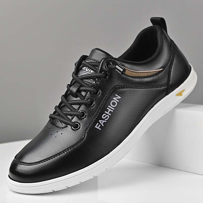 Men's Black Faux Leather Sneakers with Cushioned Sole, Comfortable Lace-Up Design for Casual and Daily Wear
