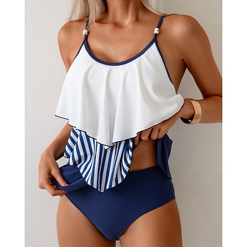 Per donna Costume da bagno Tankini 2 pezzi A righe Patchwork Gamba corta Asciugatura Rapida Elastico Senza Maniche Costume da Bagno Costume da bagno Surf Spiaggia Nuoto Estate