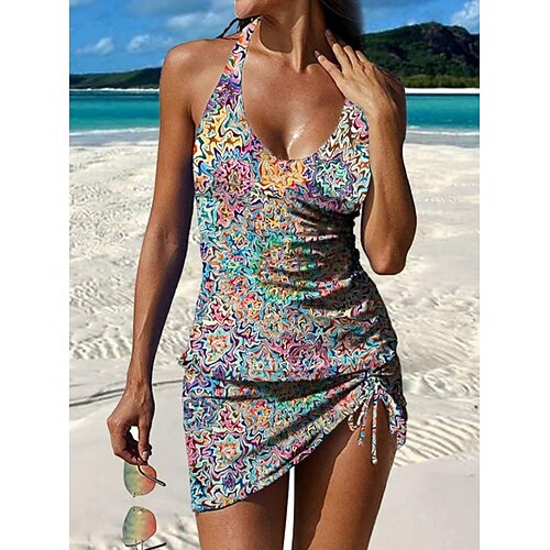 Per donna Costumi da bagno Tankini Gonna Costume da bagno Coulisse Elegante Vacanza Floreale Grafico Scollo a V Senza Maniche Costumi da bagno
