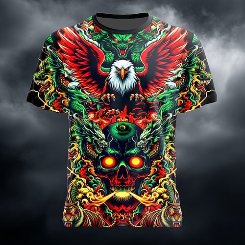 Herren Sarah Richter Drachen Teufel T-Shirt Kurzarm T-Shirt 3D Druck Rundhals Shirt Übertrieben Designer Künstlerisch Street Casual Alltag Schwarz Rot Blau Sommer Frühling Kleidung