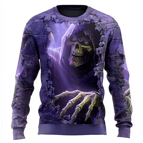 Herren 3D Teufel Sensenmann Pullover Punk Party Gotisch Langarm Rundhalsausschnitt Urlaub Blau Purpur Braun Grün Rundhalsausschnitt 3D Ganzjahres Designer S M L XL XXL XXXL