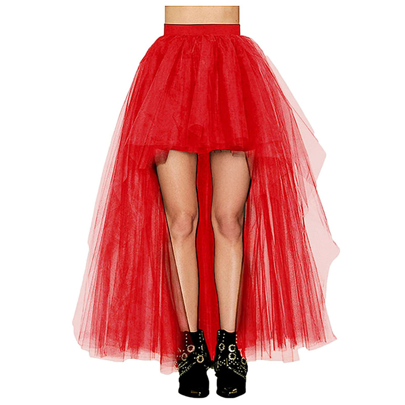 Women's Petticoat Under Skirt Tulle Hi-Lo Long Tutu Tulle Bustle Skirt Elastic Waist Festival Party Skirt
