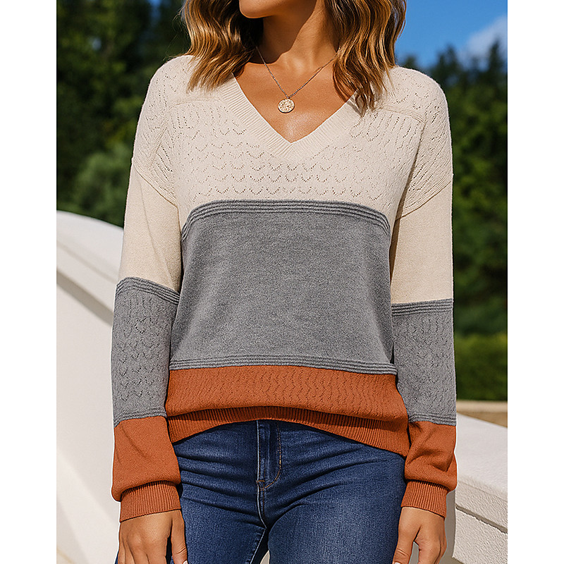 Women's Knit Shirt Pullover Sweater Hollow Long Sleeve Top Athleisure Fall V Neck Color Block Fashion Outdoor Travel Sports Sportswear Activewear Wine Red Black White