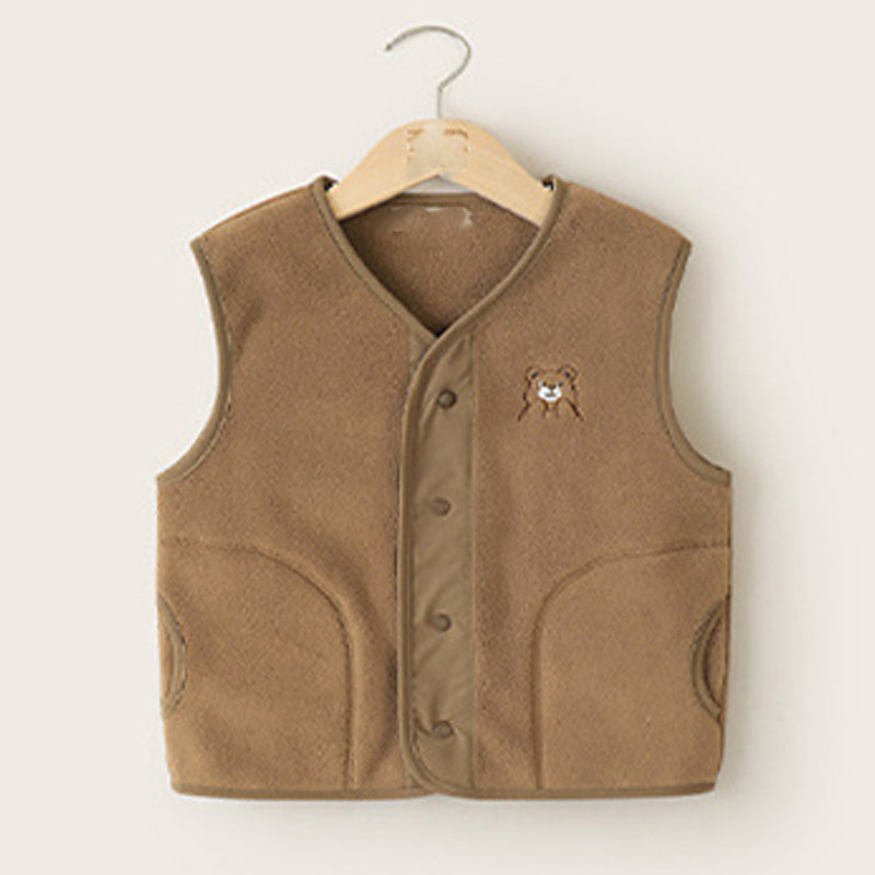 Kids Unisex Vest Coat Outerwear Solid Color Sleeveless Pocket Buttons Keep Warm Soft Breathable Coat Outdoor Fashion Daily Brown Green Khaki Fall Winter 4 years