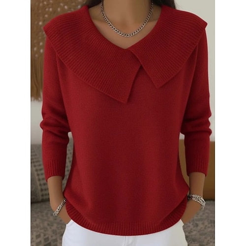 Per donna Maglione Tinta unica Informale Manica lunga Standard Maglioni cardigan Autunno Inverno Vino Nero Rosa