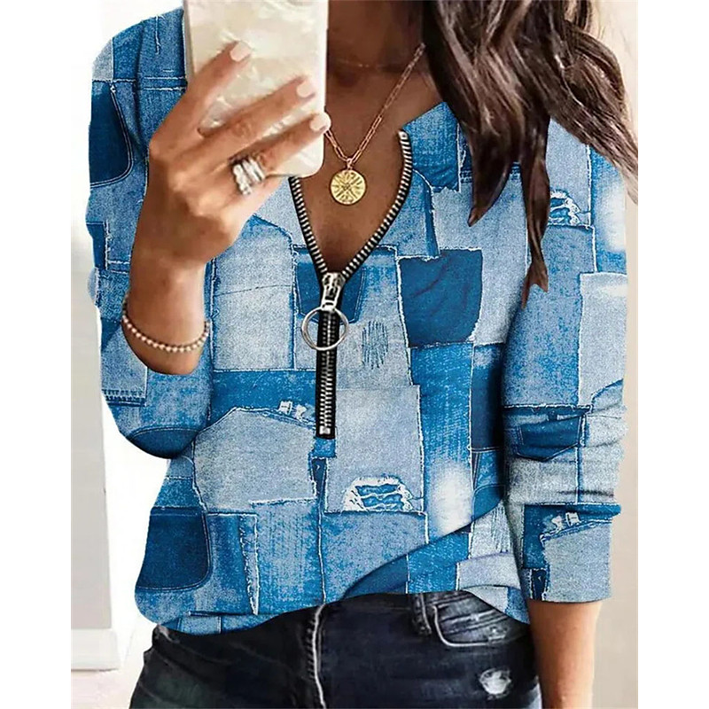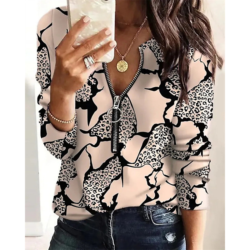 Women's Pullover Sweatshirt Zip Up Sweatshirts Graphic Color Block Plain Elegant Warm Active Long Sleeve Half Zip Regular Tops Home Work Street Patchwork Print Quarter Zip Blue Light Pink Black White