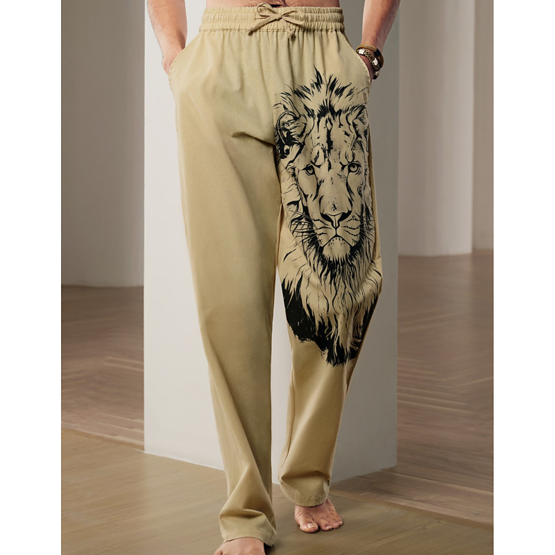 Men's Animal Lion Graphic Prints Linen Pants Trousers Baggy Pants Mid Waist Streetwear Hawaiian Designer Casual Daily Holiday Drawstring Elastic Waist 3D Print Spring Summer 3D Print Blue Green