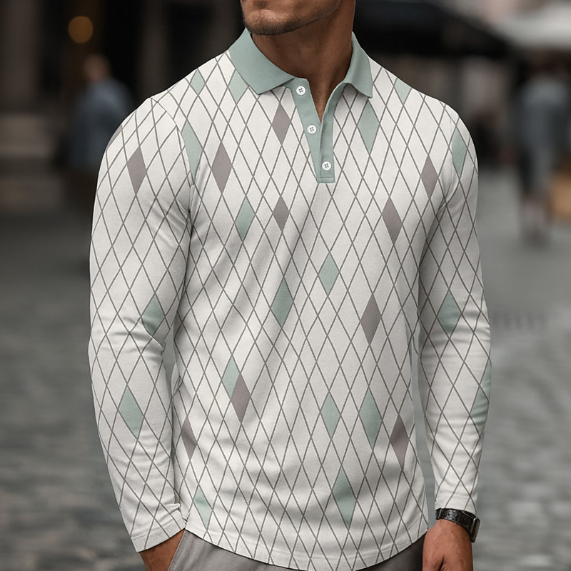 Men's Geometic Polo Long Sleeve Polo Shirts Lapel Casual Outdoor Athleisure Daily Wear 3D Print Buttons Spring Fall Winter White Green