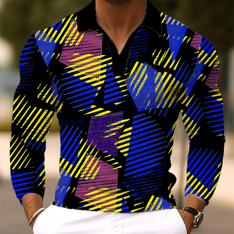 Men's Geometic Polo Long Sleeve Polo Shirts Lapel Casual Outdoor Athleisure Daily Wear 3D Print Buttons Spring Fall Winter Yellow Blue Green