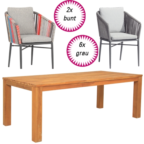 acamp Tischgruppe 6x 56363 Stapelsessel Manhattan color + 57453 Tisch Old Java 180cm