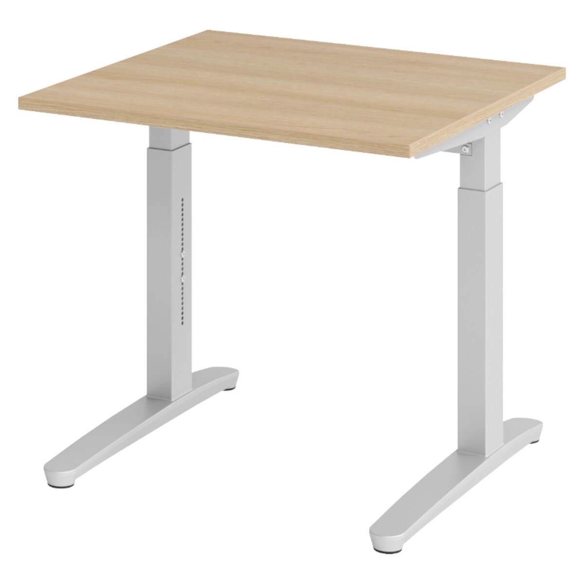 bümö manuell höhenverstellbarer Schreibtisch 80x80 in Eiche, Gestell in silber - PC Tisch höhenverstellbar & klein, höhenverstellbarer Tisch Büro,