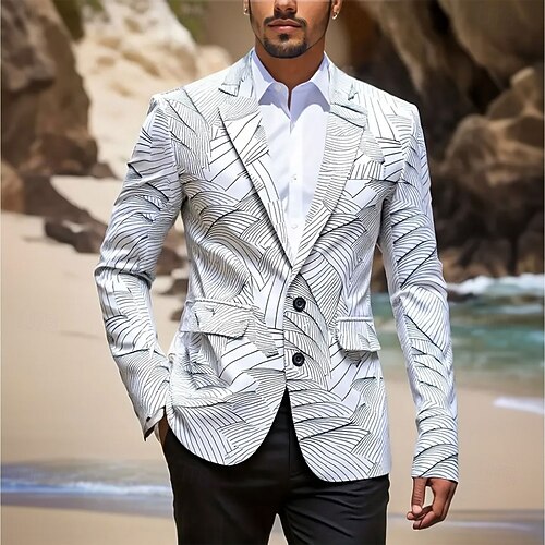 Per uomo Cappotto Blazer Affari Casual Quotidiano Britannico Tutte le stagioni 100% Poliestere Grafico Stampa 3D Bottoni Confortevole Monopetto Giacca Nero Bianco Blu