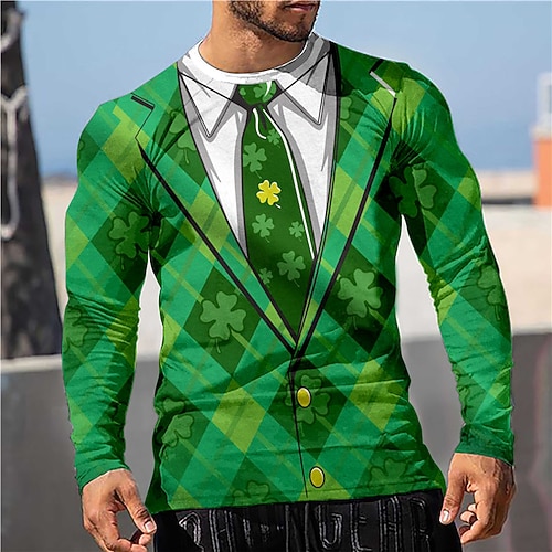 San Patrizio Per uomo Trifoglio Irlandese fortunato Maglietta Manica Lunga maglietta Stampa 3D Girocollo Camicia Esagerato Designer 3D Vacanza Feste Streetwear verde 1# Verde 2# Verde 3# Estate
