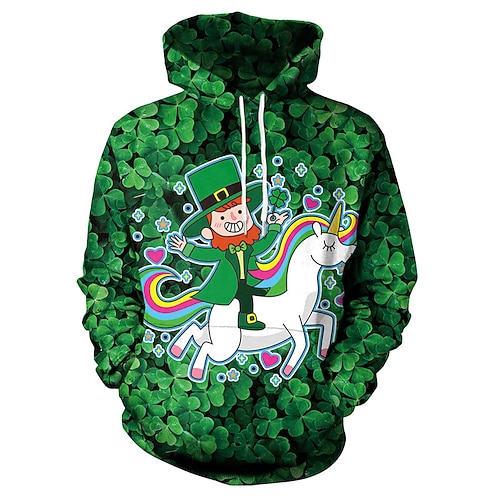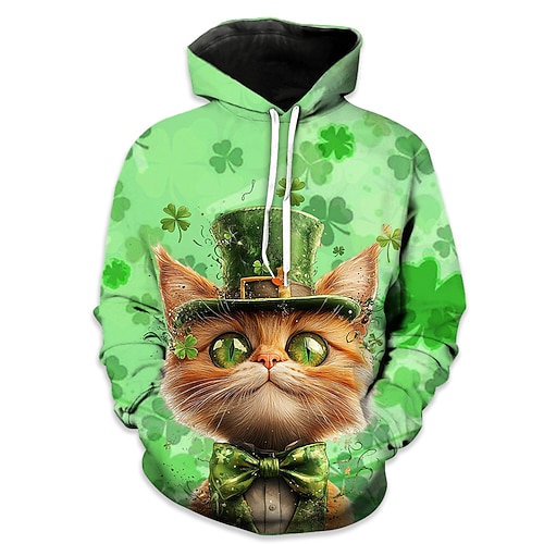 Festa di San Patrizio Gatto Trifoglio irlandesi Felpa con cappuccio Lucky Clover Tasca frontale Grafica Per Da coppia Per uomo Per donna Per adulto giorno di San Patrizio Stampa 3D Feste Casual