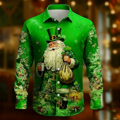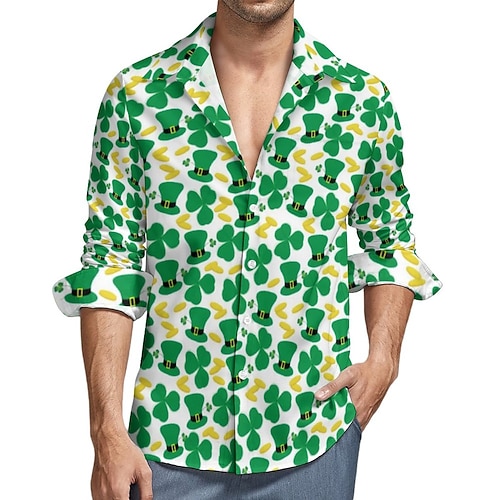 Festa di San Patrizio Per uomo Quadrifoglio Moneta d'oro San Patrizio Camicia Camicia con Bottoni Manica Lunga Vintage Retrò Feste Ferie Primavera Autunno Collo ripiegato Stampa 3D camicie con