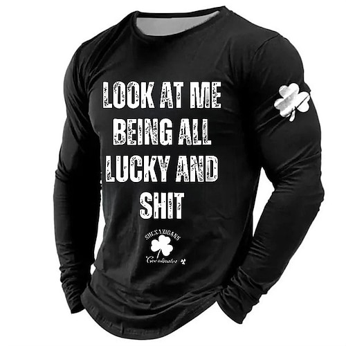 San Patrizio Per uomo Trifoglio Irlandese fortunato Maglietta Manica Lunga maglietta Stampa 3D Girocollo Camicia Designer Casual Feste Ferie Club Nero Blu Verde Estate Primavera Abbigliamento S M L