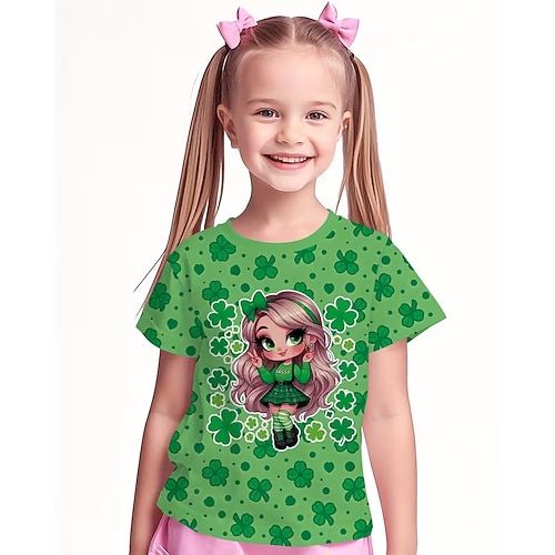 San Patrizio Da ragazza 3D A quadrifoglio Set pigiama maglietta e pantaloni Manica corta Stampa 3D Estate Primavera Autunno Attivo Di tendenza stile sveglio Poliestere Bambino 4 anni Girocollo