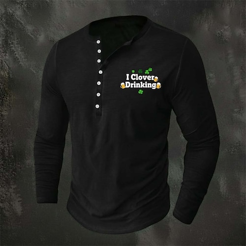 Per uomo Grafico Trifoglio Maglietta Maglia Henley Manica Corta Stampa 3D Moda Designer Confortevole Giorno di San Patrizio Quotidiano Primavera Autunno Nero Verde Henley Maglietta Henley