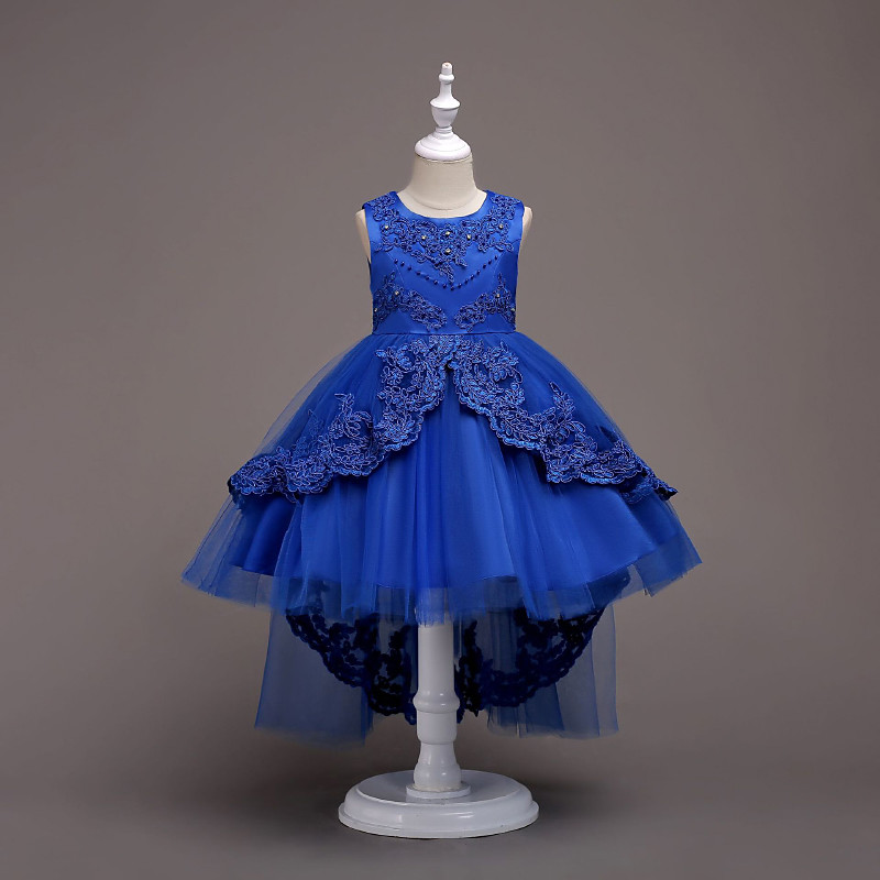 Flower Girl Dress Girls' Formal Dress Wedding Attire Prom Party Wedding Elegant Fashion Adorable First Communion Dress Lace Patchwork Solid Color Sleeveless V Neck Blue Black 4 years