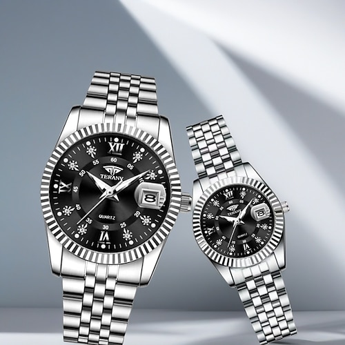 Orologio da coppia 2 pezzi, regali di San Valentino per uomo e donna, orologio di lusso affascinante, decorazione in strass, funzione calendario, display con luce notturna, tempo libero alla moda, i